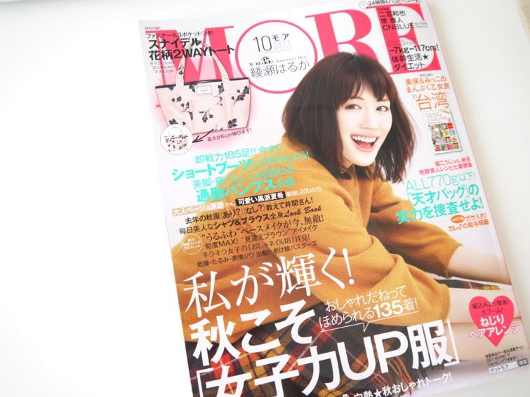 そんなMOREの、綾瀬はるかさんが表紙の昨日発売した10月号。