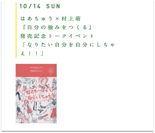 前回ご紹介したはあちゅうの新刊「自分の強みをつくる」の出版トークイベントにて対談させていただきます。
