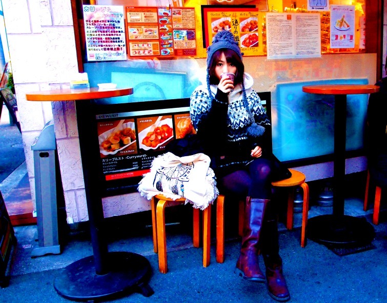 少し降りてきて元町にあるドイツのソーセージやさんカリーブルスト でソーセージとホットワイン。