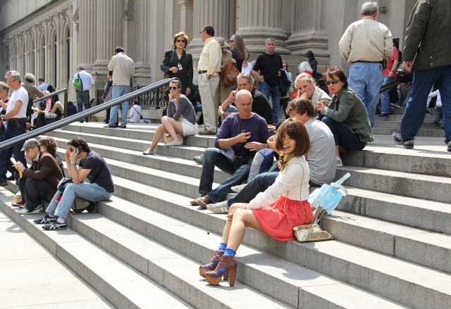 メトロポリタン美術館の階段にてアイスを食べながら友達と会話。