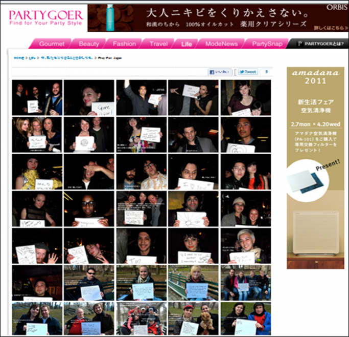 今、PARTYGOER でもNYスタッフによって毎日この度の震災における日本への応援メッセージが