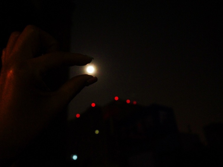 ホテルの部屋から見たスーパームーン。