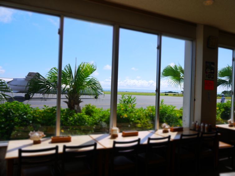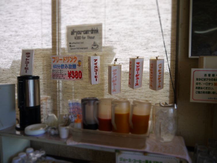 フリードリンクの半分以上がトロピカル系でラインナップされた、おちゃめな空港の喫茶店。