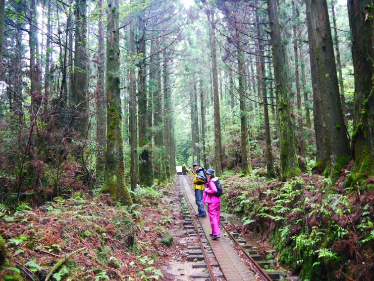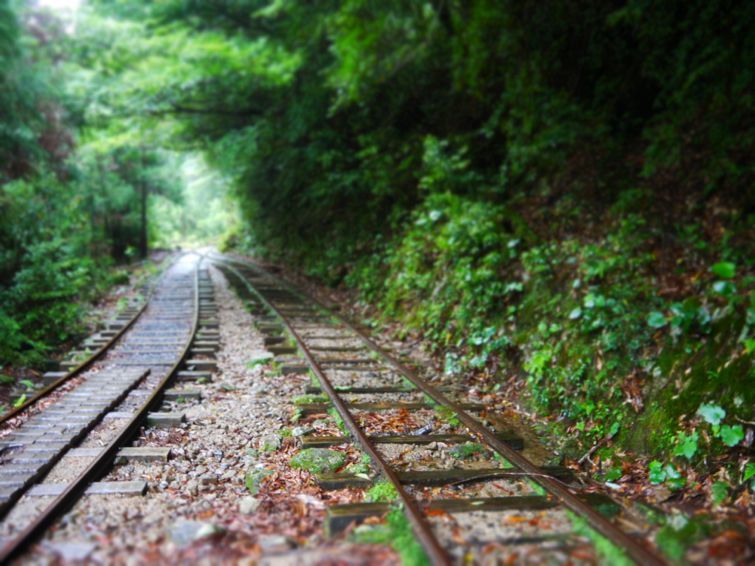 そんなキコリさんがトロッコで通るレールの上をひたすら歩き、