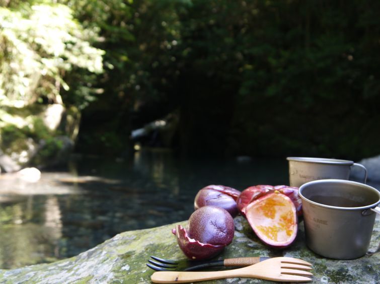 自然の中で食べるフルーツやコーヒーの美味しいこと。