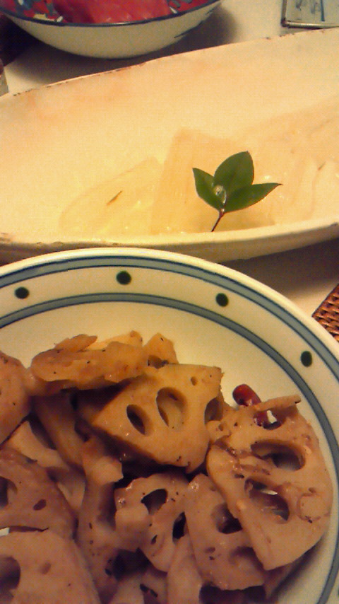 最初お刺身だけ撮ったんだけどあまりにも色が無くてレンコンも