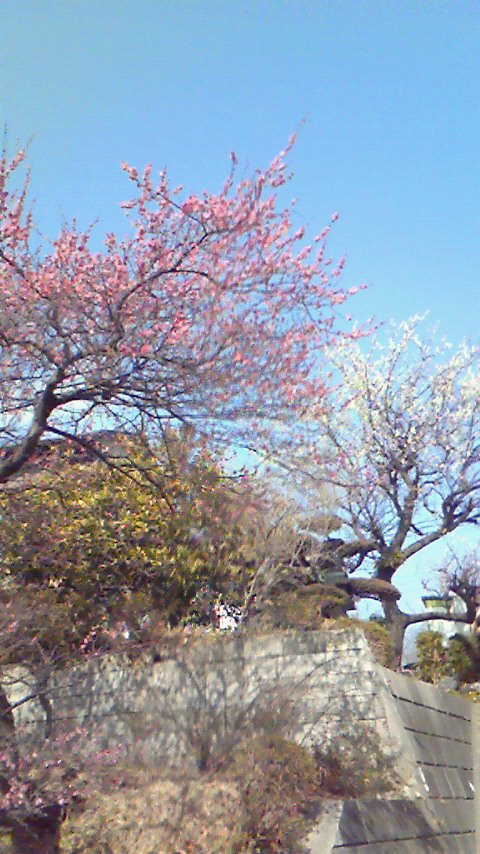 朝家の近くで見つけた梅。これでも横浜市の風景です。