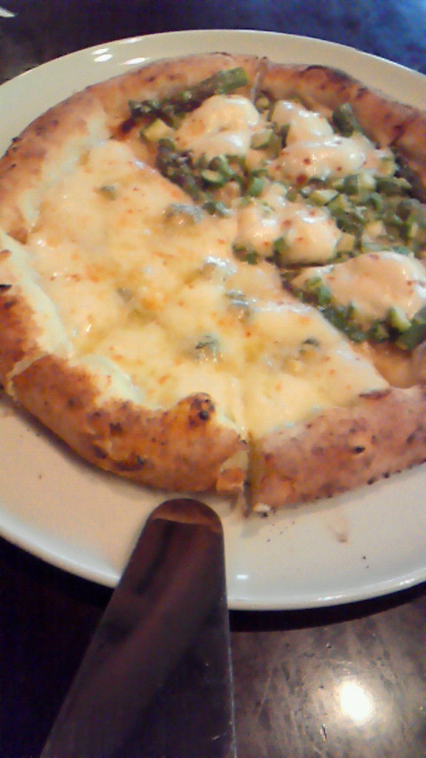 クワトロフォルマージュとアスパラの2色ピッツァと
