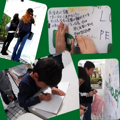 まわして元気に募金活動して花見では是非東北のお酒を飲んでください」というメッセージも