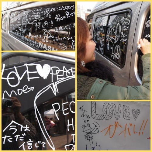 福島行きのワゴンもみんなからのメッセージでいっぱい。