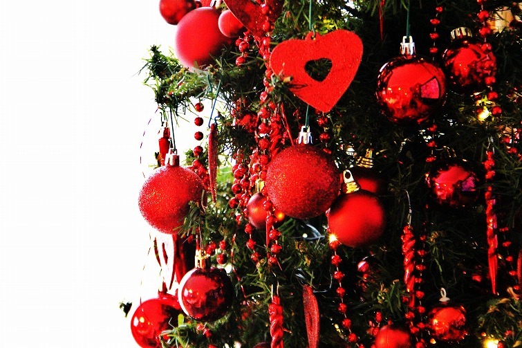 今年のツリーは,赤ですね・・・