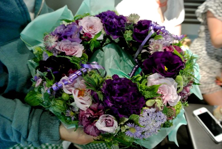 そんでもって、フラワーアレンジメントの教室をしているうちの母からは6月風のリースを。ひとりに。