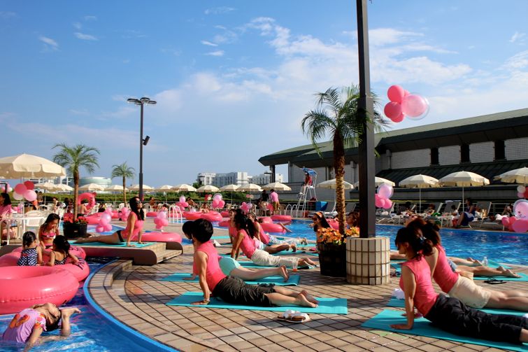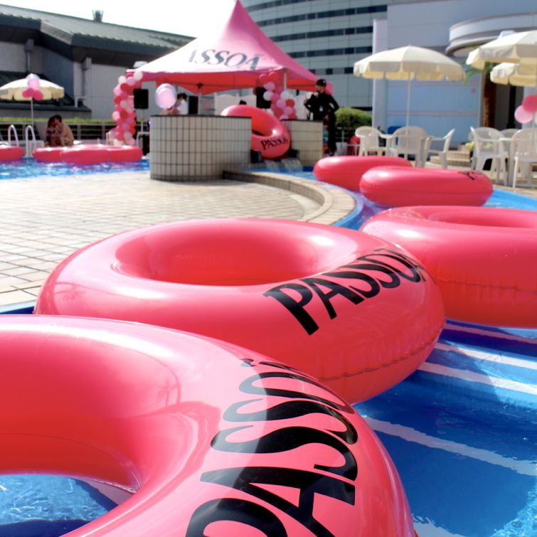 今回ピンク色のPASSOAに包まれたプールサイドでは、