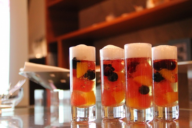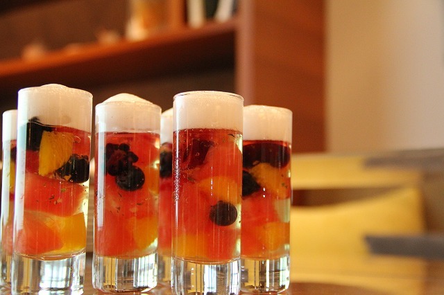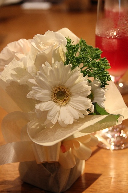 私の場合、一眼レフなのでボケを作ることは簡単ですが、白いお花を活かすために赤いカクテルを映しこんだり