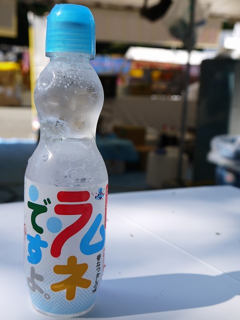 男の子が2本ラムネを買って女の子に渡すと、飲んでいる姿を見られるのが少し照れくさいのか、