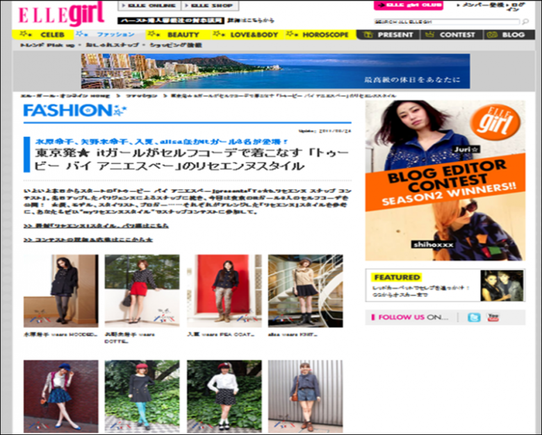 そしてこの度、ELLEgirlONLINE にて東京のitガールとして
