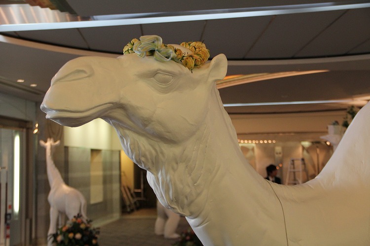 頭に花輪をつけて、どや顔のラクダ。