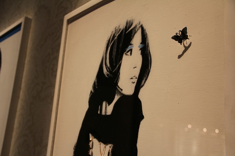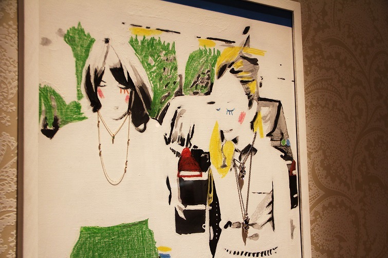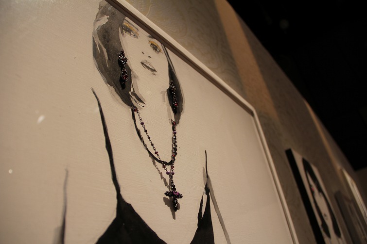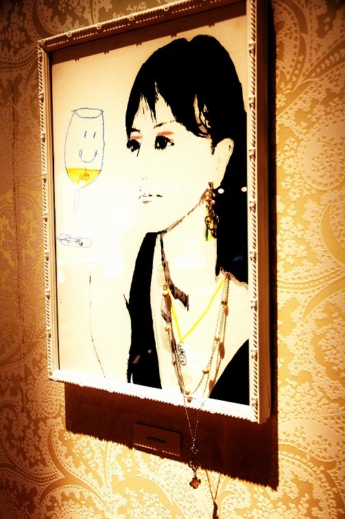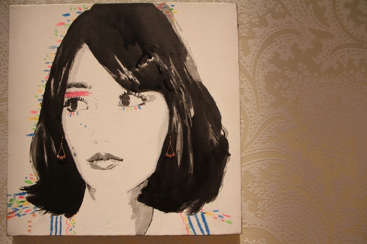 この写真わかりますか?絵にアクリルの上からドリルで穴を開けてジュエリーをつけているのです^^