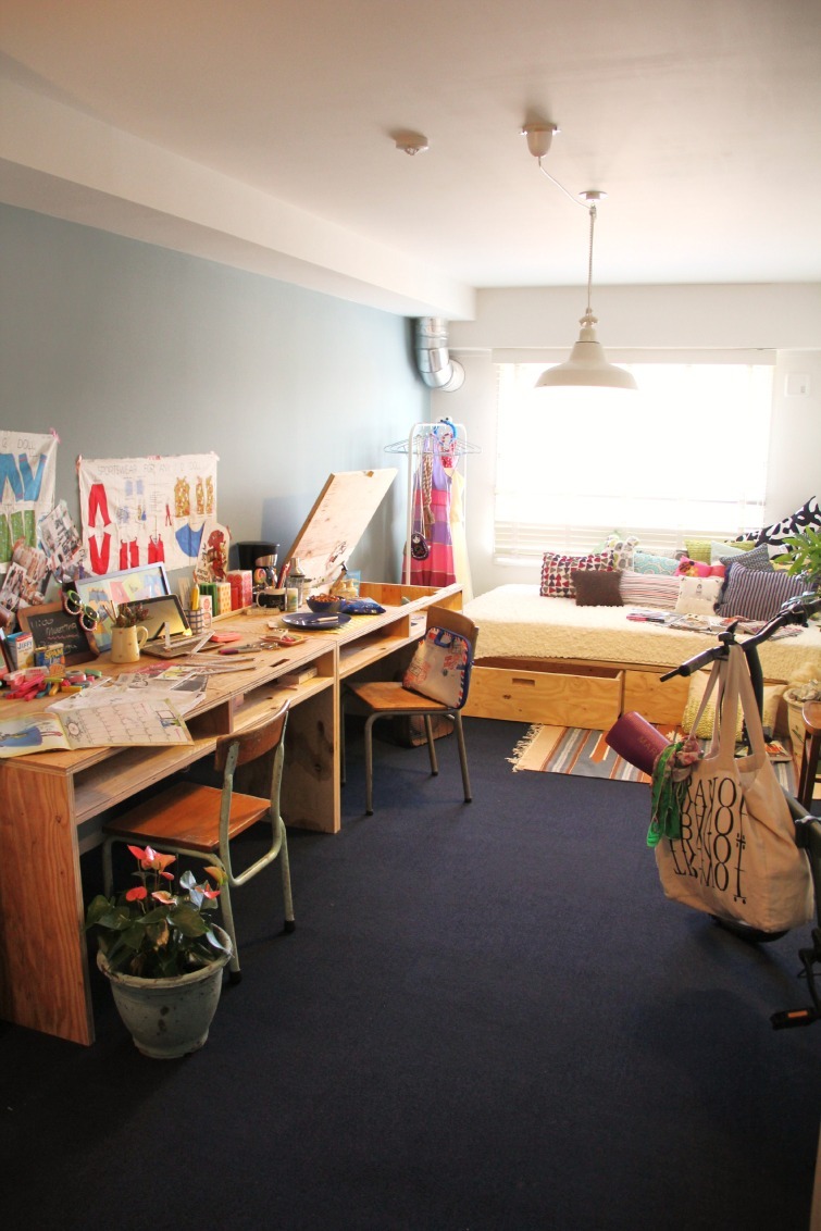今回この部屋を完成させるにあたって、可愛い迷彩柄の自転車やデスクランプ、コーヒーメーカー、