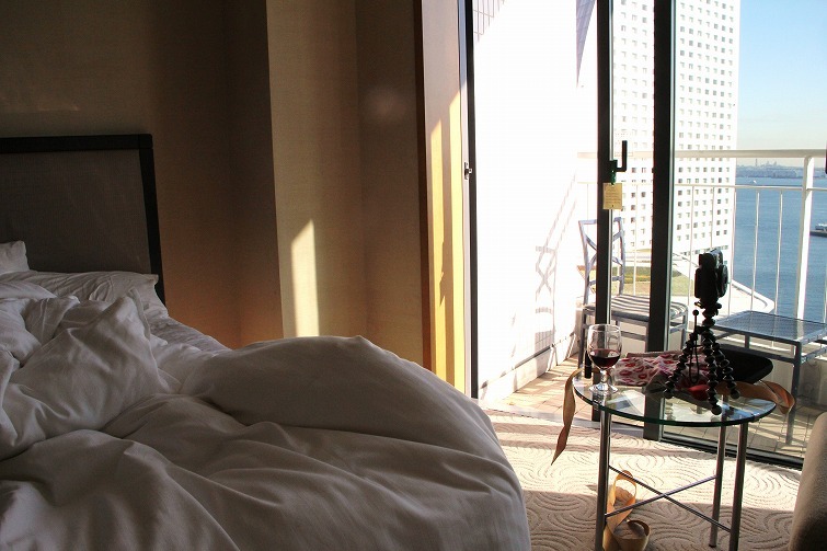 はしゃぎまくって、みなとみらいのホテルで迎えた朝のベランダの写真は少しやさぐれてます笑