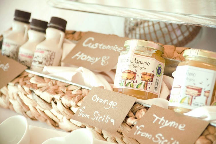 クローバーやトリュフ、栗の蜂蜜・・などなど。思わず全部試したくなっちゃうようなものばかりを用意。