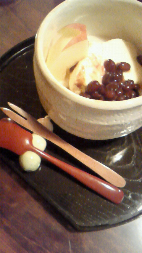これは黒胡麻豆腐入りの豆乳あんみつ。