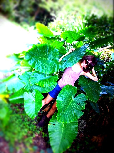 あまりに大きな葉っぱに包まれてアリエッティみたいになってしまいました。